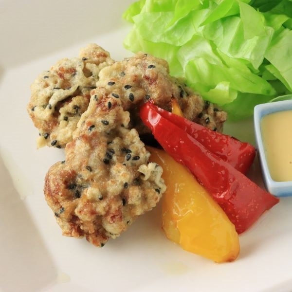 ・中華風☆黒ゴマ豚こま天 辛子マヨネーズ