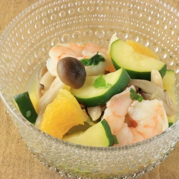 ・エビとグリル野菜のオレンジ甘酢和え ミント風味
