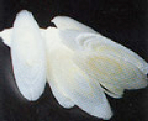 切り口の丸いものを縦十文字に切り、さらに端から切ります。イチョウの葉に似た形になります。