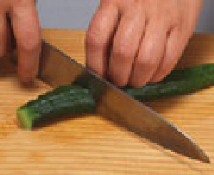 回し切りともいって、材料を少しずつ回しながら斜め切りにします。