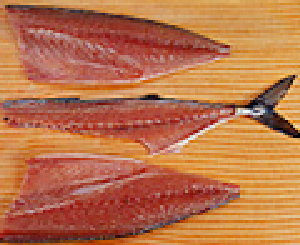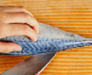 片手で尾を持ち、頭の方に向かって、身と中骨を一気に切り離します。