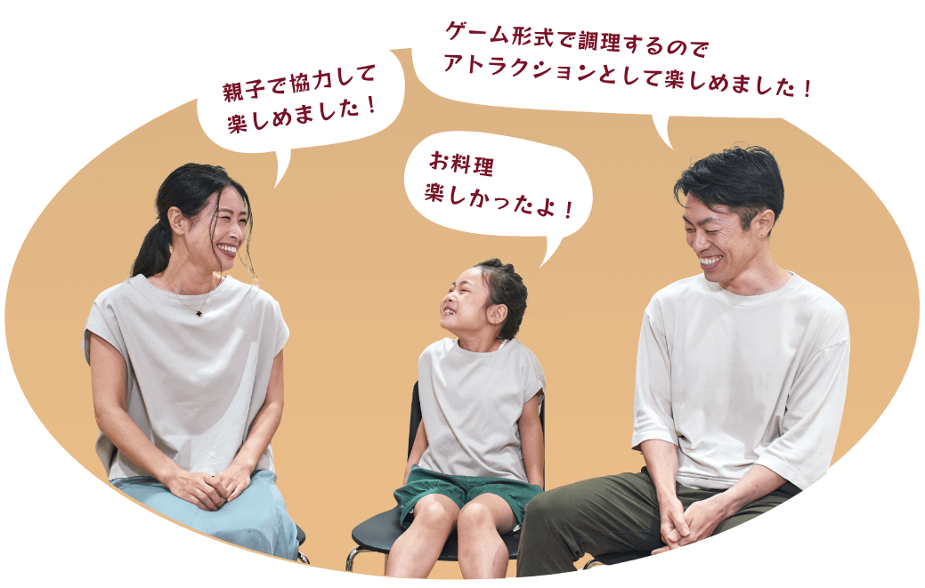 - 5歳以上のお子さまから1組3名までご参加可能です。クッキングゲームにご参加されないお子さま、対象年齢未満のお子さまの同席はご遠慮ください。